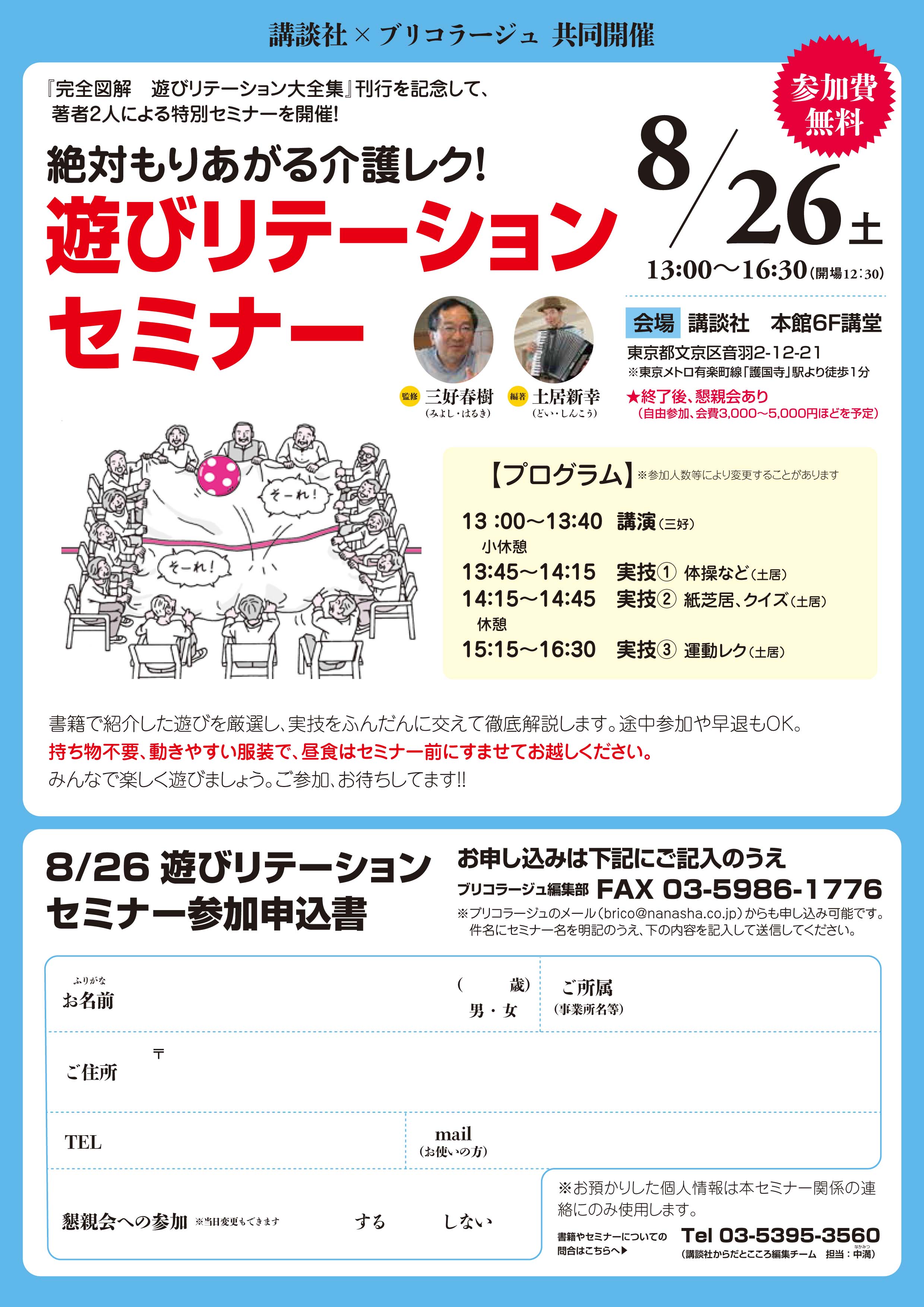 絶対もりあがる介護レク!遊びリテーション セミナー(8/26)